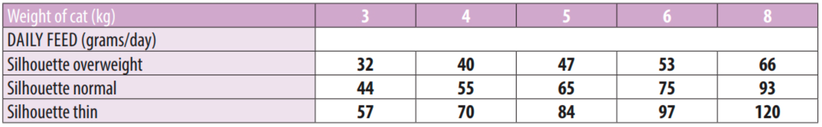En algunos casos, como de obesidad y/o otros problemas clínicos. Es aconsejable restringir las dosis, con el asesoramiento de un veterinario y/o siguiendo la tabla. Es importante que su gato siempre tenga agua fresca y limpio disponible.