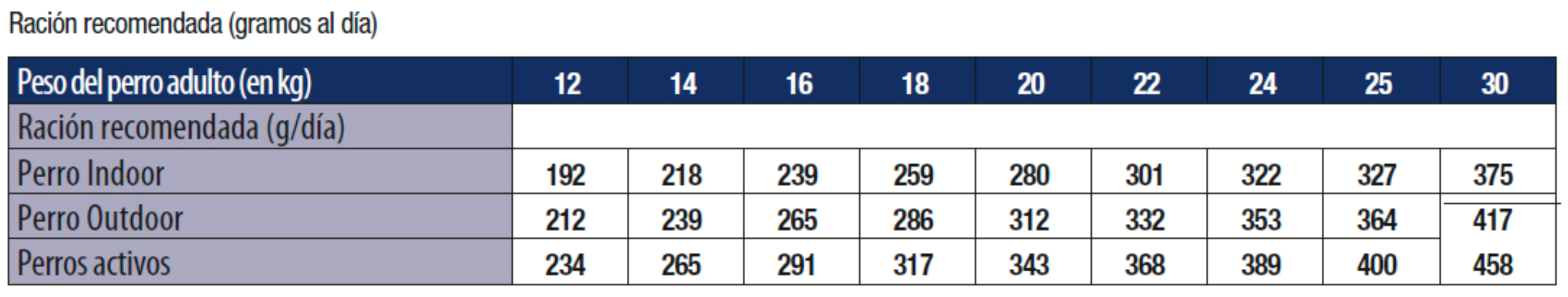 Proteína bruta 26.00%, Aceites crudos y grasas 13.00%, Fibra bruta 5.00%, Ceniza bruta 6.50%, Calcio 1.20%, Fósforo 1.00%, Ácidos grasos omega 6 4.20%, Ácidos grasos omega 3 0.70%, Metabolizable Energía 3,870 Kcal / kg.