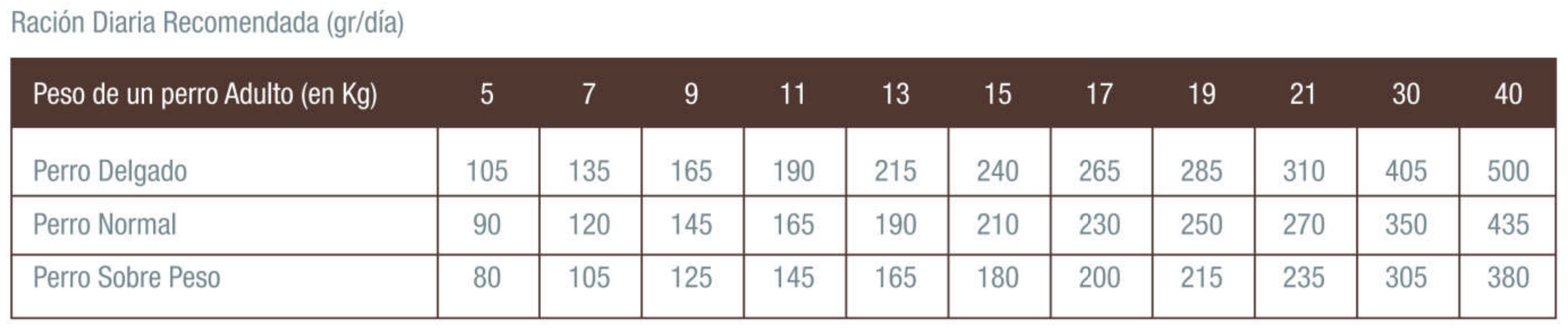 Se recomienda buscar la opinión de un médico veterinario antes de administrar a su mascota. Tiempo recomendado de uso: hasta 6 meses. La ración diaria recomendada en gramos se informa en la Tabla y se debe proporcionar en 2 comidas. Mantener siempre a disposición agua limpia y fresca.