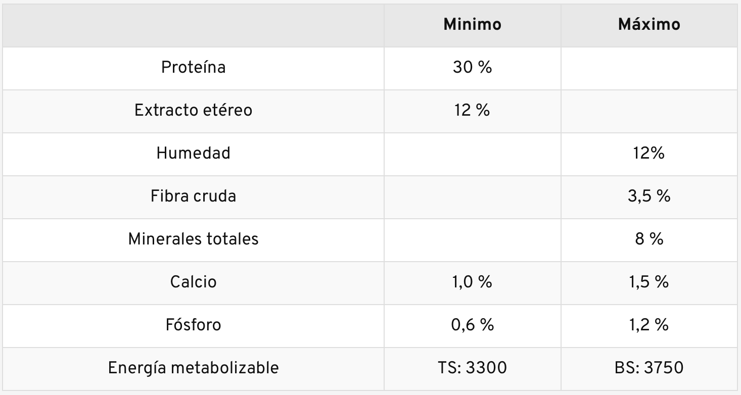 Harina de cordero, arroz integral, arveja, gluten de maíz, germen de maíz desgrasado, grasa animal (pollo), aceite de salmón (fuente de omega 3 y 6), hidrolizado proteico de menudencias vacunas, porcinas y aviares, pulpa de remolacha(fuente de fructo-oligosacáridos – FOS), levadura de cerveza, zeolita, sal, extracto de yucca schidigera, manano-oligosacáridos – MOS, nucleótidos de levadura, carbonato de calcio, dipropionato de amonio, ácido propiónico, acetato de zinc, pirofosfato ácido de sodio, glucosamina, condroitin sulfato, colágeno hidrolizado, ascorbato de manganeso, metionina, antioxidantes naturales: extracto de romero, vitamina C, betacaroteno, ácido cítrico, tocoferoles, licopeno, luteína, polifenoles, taurina,vitaminas: A, D3, E, K, B1, B2, B6, B12, ácido fólico, ácido nicotínico, ácido pantoténico, biotina, colina, minerales: zinc, hierro, cobre, yodo, selenio.