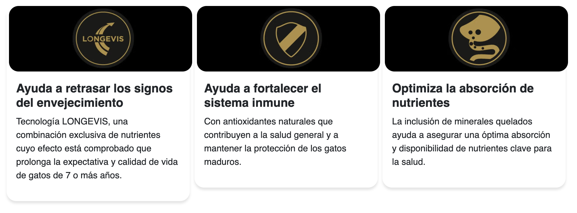 Es una tecnología exclusiva, formulada con una novedosa mezcla de aminoácidos, antioxidantes naturales, vitaminas del complejo B y omega 3 y 6, para ayudar a proteger y mantener la actividad cerebral y retrasar los signos del envejecimiento de tu gato.