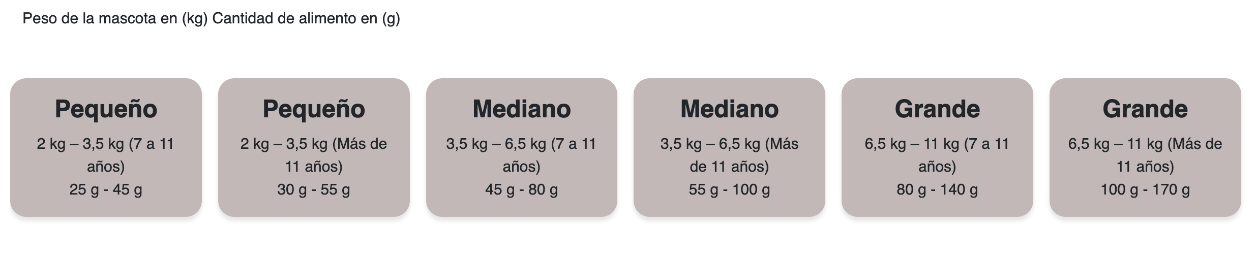 Una taza de 200 ml contiene aproximadamente 90 g de PURINA®PRO PLAN® Adult 7+. El cambio en la alimentación de tu gato debe ser gradual en un período de 7 hasta 10 días. Sustituye pequeñas cantidades de alimento cada vez, hasta que tu gato consuma únicamente PURINA® PRO PLAN® . Las cantidades diarias recomendadas deberán ser ajustadas a las condiciones ambientales, al nivel de actividad del gato y a su condición física.