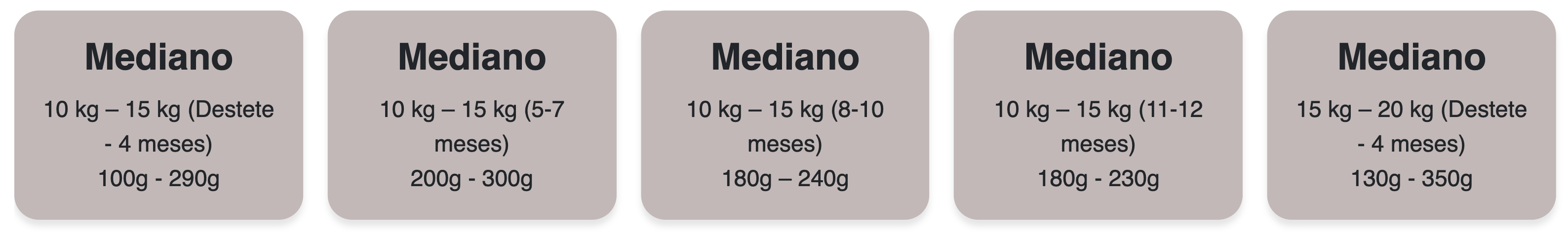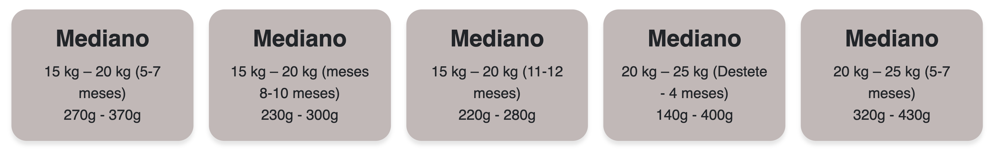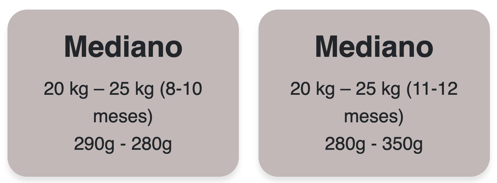 Peso de la mascota en (kg) Cantidad de alimento en (g)