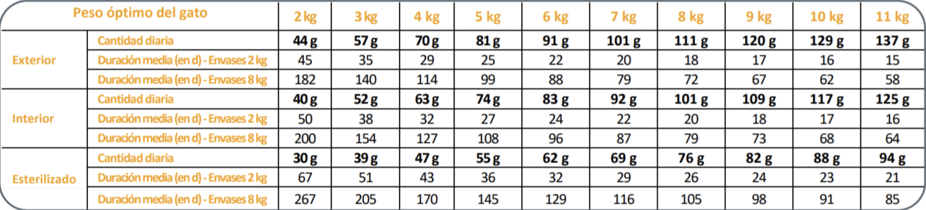 - 3998 kcal/kg Energía metabolizable