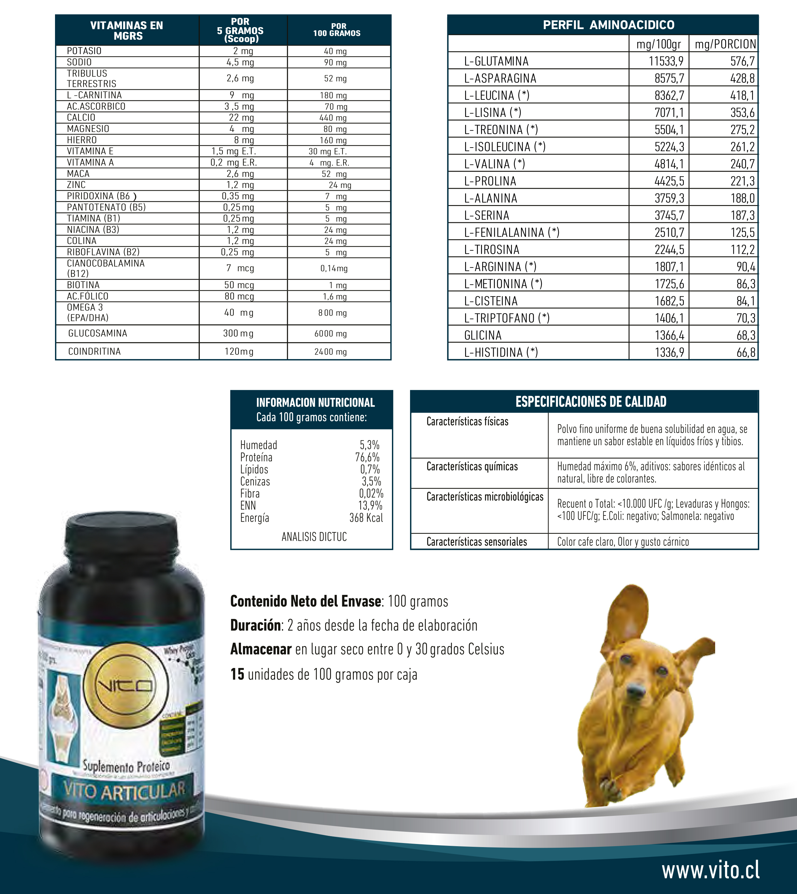 VITO Articular es un novedoso complemento proteico para la regeneración de los cartílagos y articulación de tu perro.